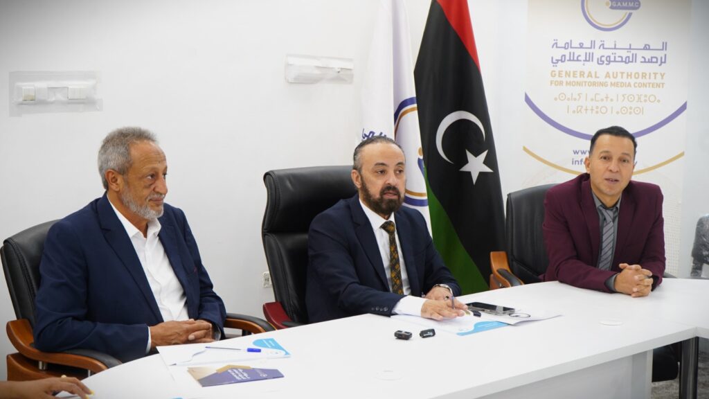 بحث رئيس الهيئة العامة لرصد المحتوى الإعلامي، السيد جلال عثمان، اليوم الأربعاء بمقر الهيئة بطرابلس، مع نقيب الفنانين الليبيين المكلف السيد محمد النمر، آليات الارتقاء بجودة الأعمال الدرامية والمنوعة، في إطار تعزيز التعاون والتنسيق بين الهيئة ونقابة الفنانين الليبيين، لتطوير الأداء الفني والارتقاء بجودة المحتوى المقدم للجمهور.