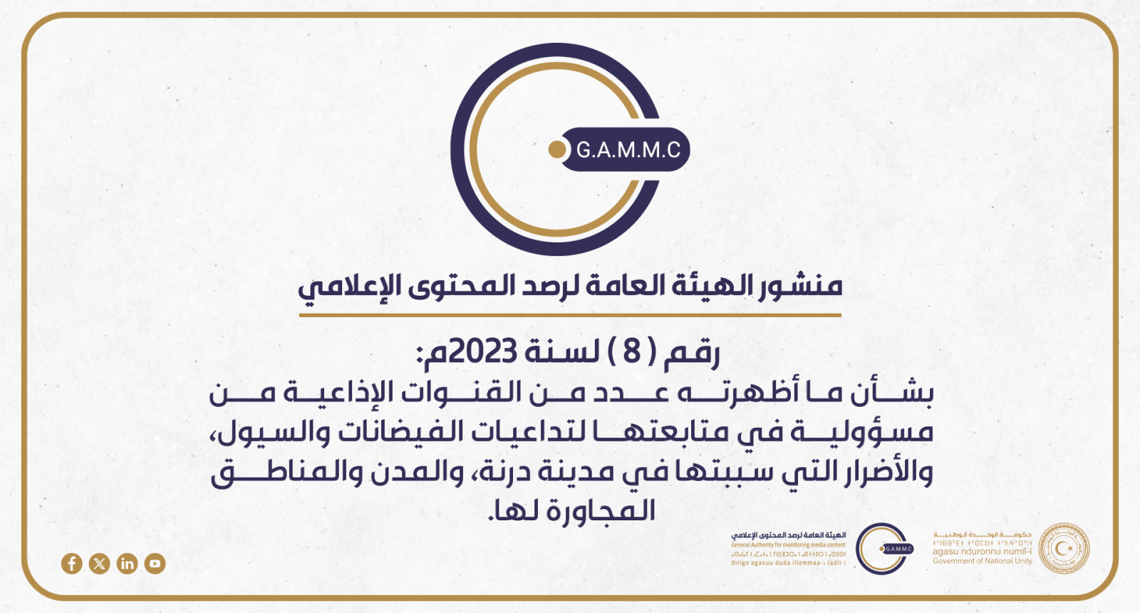 منشور الهيئة العامة لرصد المحتوى الإعلامي رقم (8) لسنة 2023