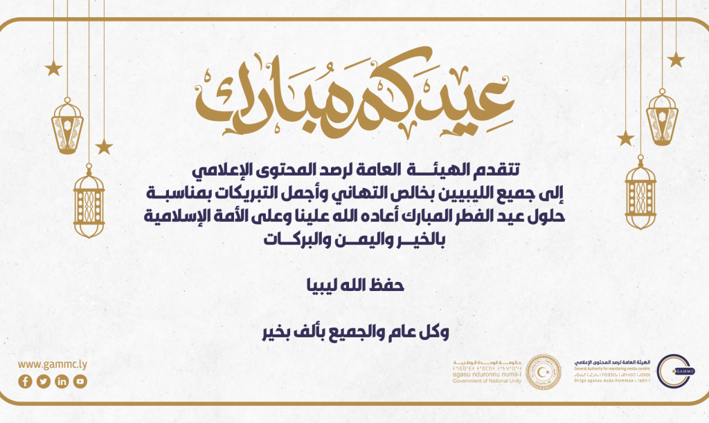 بمناسبة حلول عيد الفطر المبارك، نتقدم بأحر التهاني لأبناء شعبنا العزيز، وندعــو الله أن يمن علينا بالرخــاء والسـلام. ونؤكد على مواصلة عملنا كداعم حقيقي للاستقرار حتى تحقيق الاستحقاق الانتخابي الذي يطمح إليه كل الليبيين، وإننا سنبقى ثابتين على التزامنا بدعم حرية الرأي والتعبير، وسنواصل العمل بلا كللٍ لدعم السلم المجتمعي من خلال إعلام خالٍ من […]