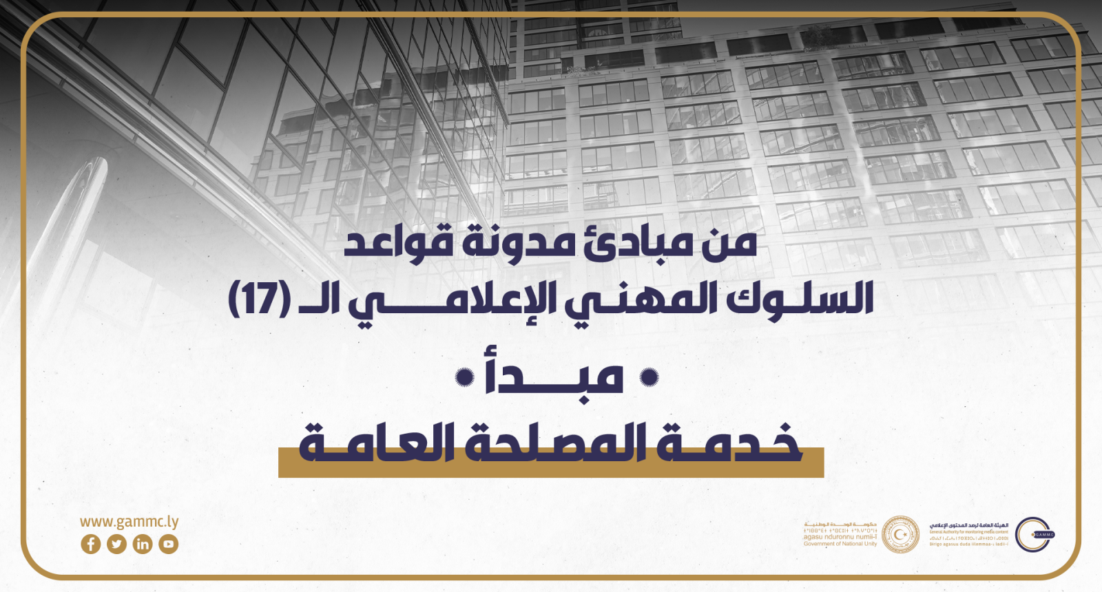 من مبادئ مدونة قواعد السلوك المهني الإعلامي الـــ (17) مبدأ: خـدمــة المصـلحة العـامــة،وهي ما يهم كل فرد في المجتمع؛ فهي تتعلق بالصالح الع…