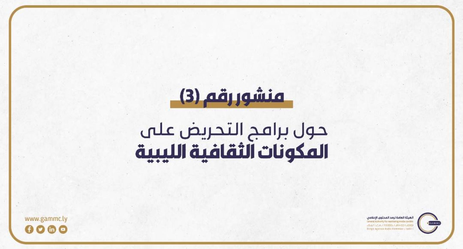 منشور رقم (3) لسنة 2023 حول برامج التحريض على المكونات الثقافية الليبية