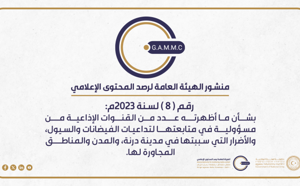 بشأن ما أظهرته عدد من القنوات الإذاعية من مسؤولية في متابعتها لتداعيات الفيضانات والسيول، والأضرار التي سببتها في مدينة درنة، والمدن والمنا…
